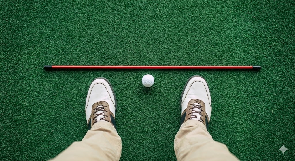 Proper ball position supports clean exit and distance retention.